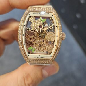 Powered by a manual-winding mechanical caliber offering up to four days of power reserve, the watch features a curved tonneau case measuring approximately 32 × 42.3 mm, a sapphire crystal, and 30-meter water resistance. A symbol of elegance and technical artistry, this model epitomizes Franck Muller’s mastery of both design and horology.