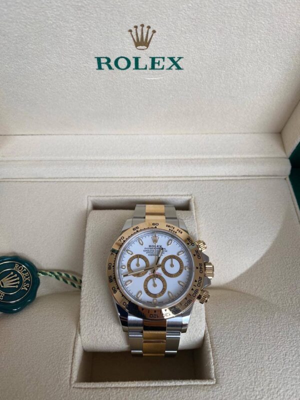 Rolex Cosmograph Daytona Ref. 116503 — воплощение спортивного духа и роскоши. Корпус из стали Oystersteel с элементами из жёлтого золота (Rolesor) подчёркивает статус и стиль владельца.